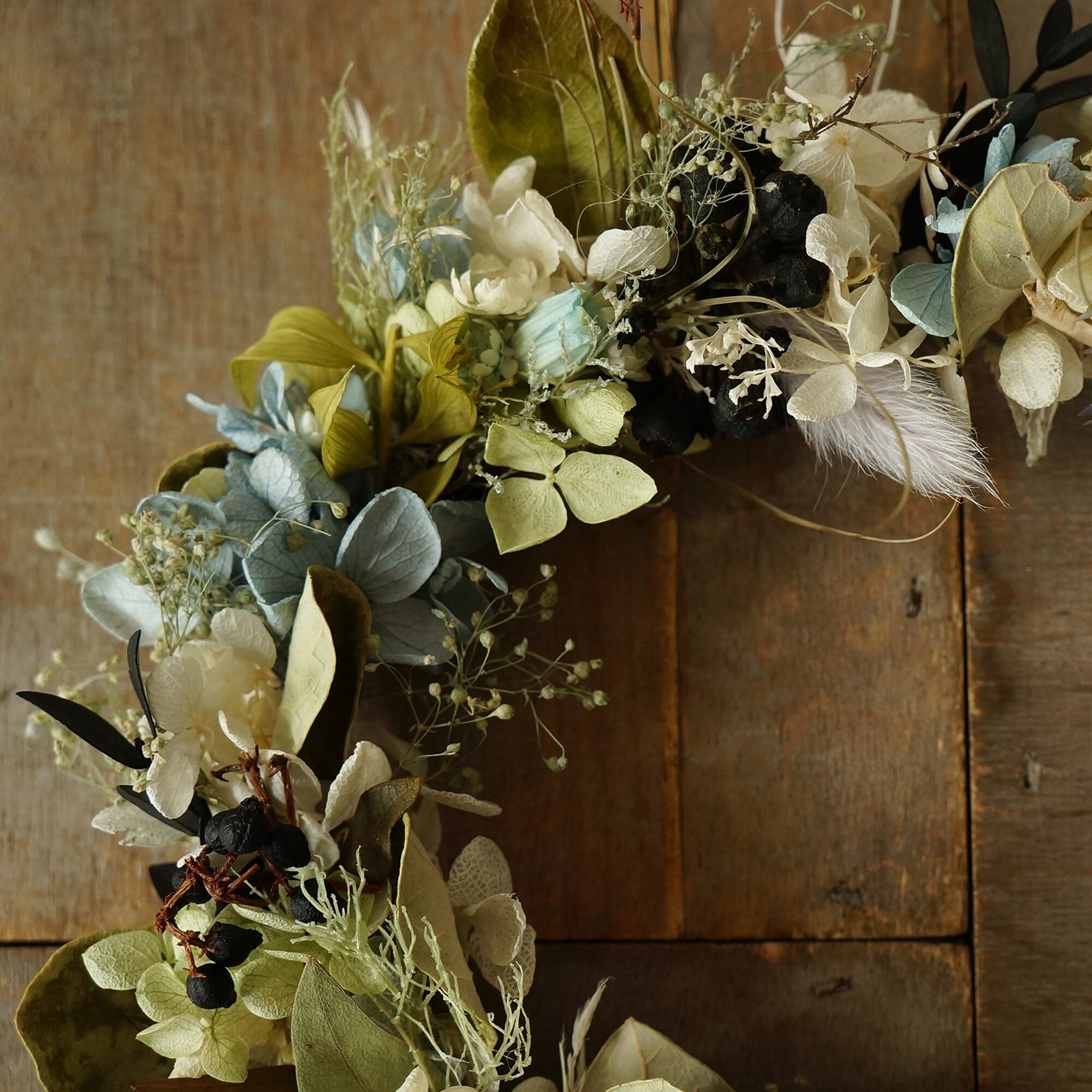 一見ドライフラワーのリースのようなノスタルジックな雰囲気になっております。