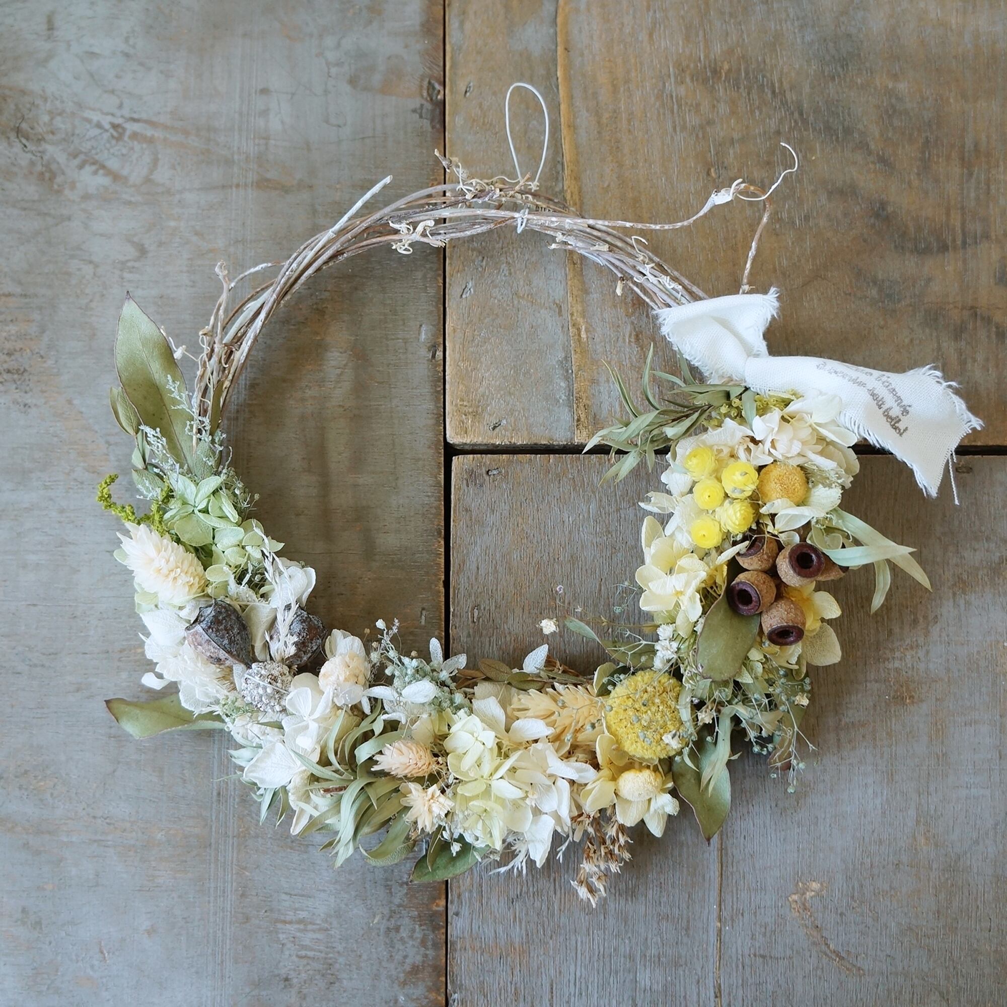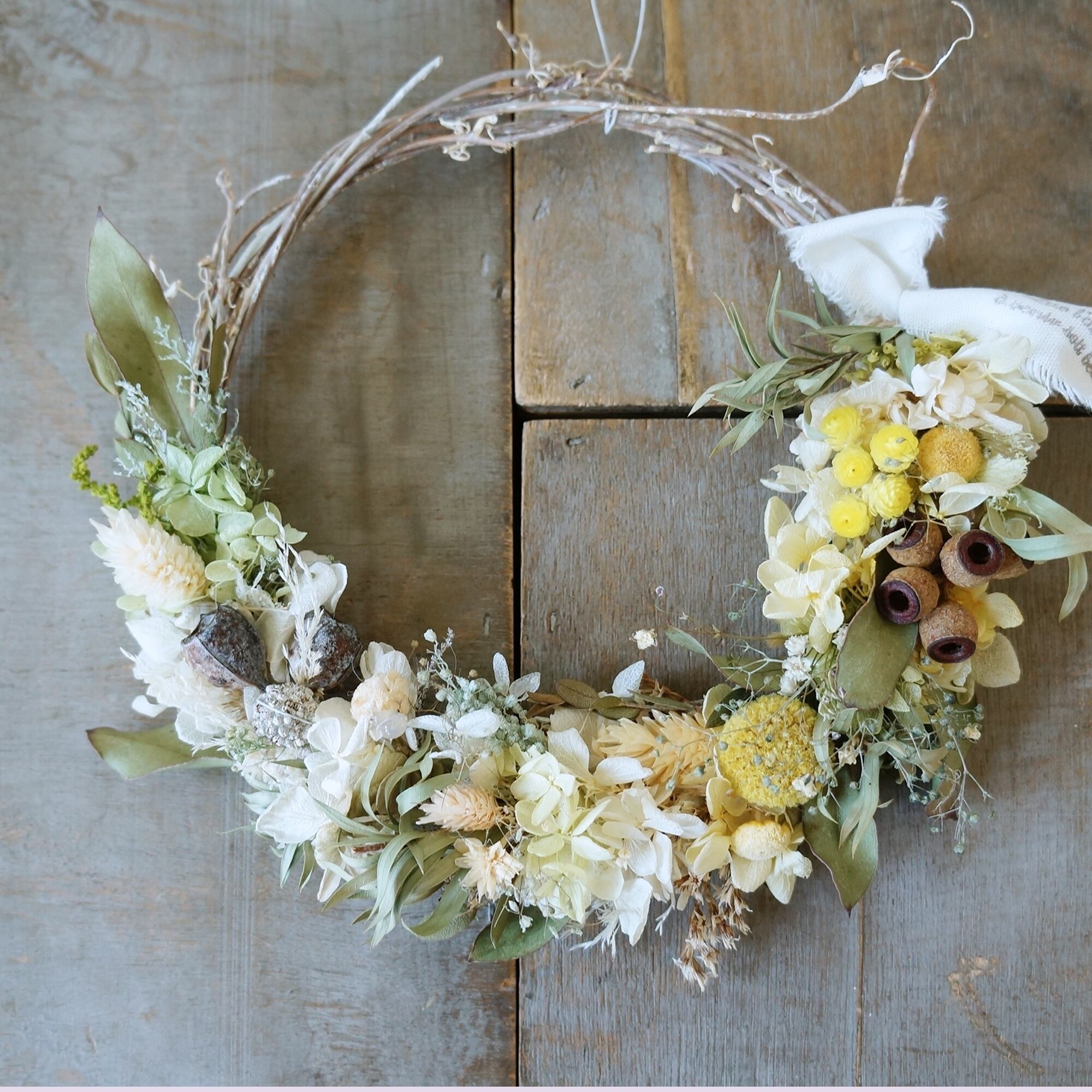 ドライ(ユーカリ、ゴールドスティック、木の実など)