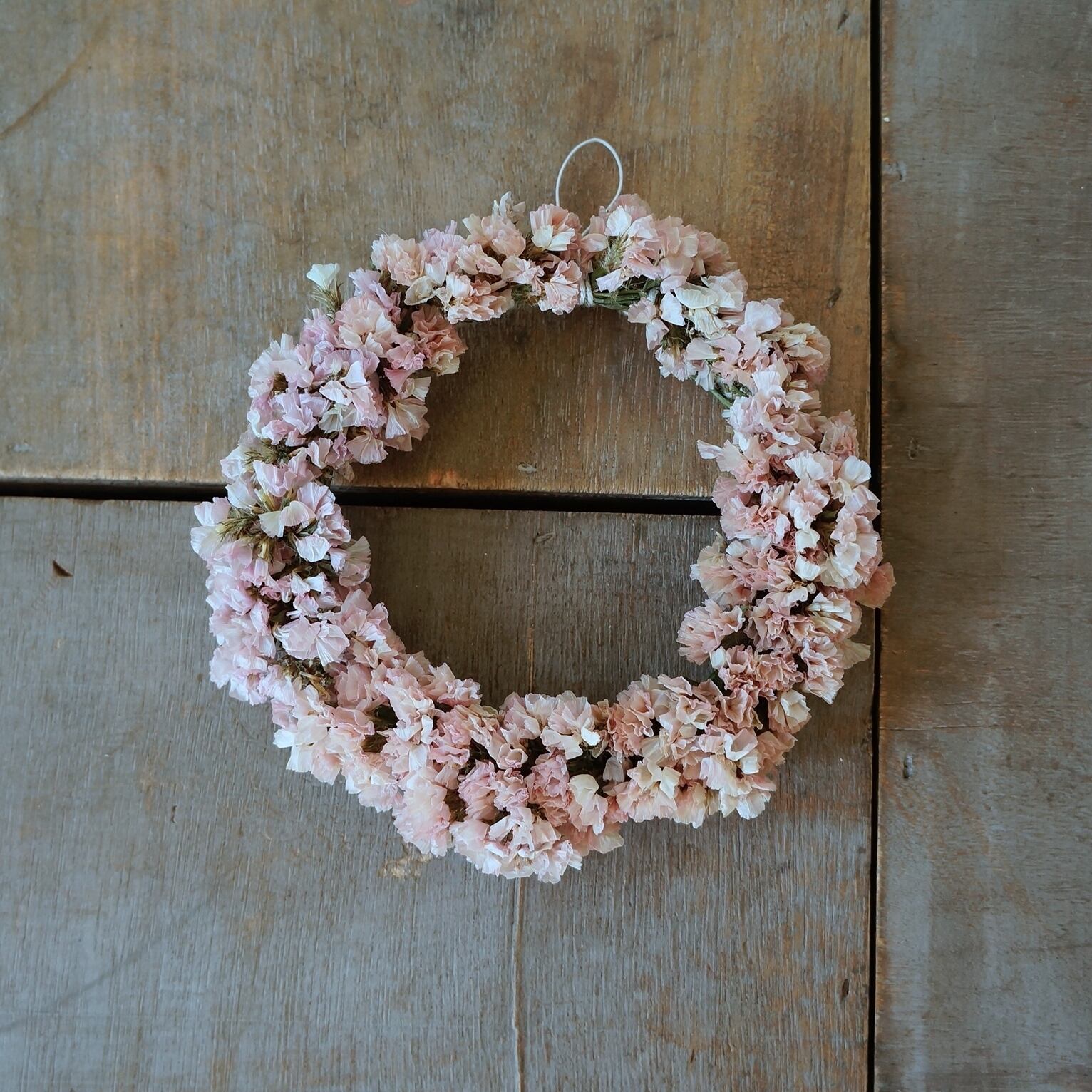 今までドライフラワーのリースを飾ったことがないという方へお試しにどうでしょうか?というイメージで制作しました。