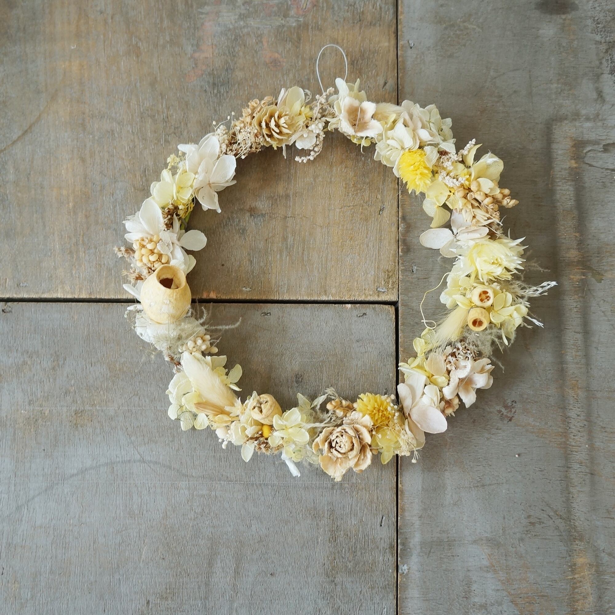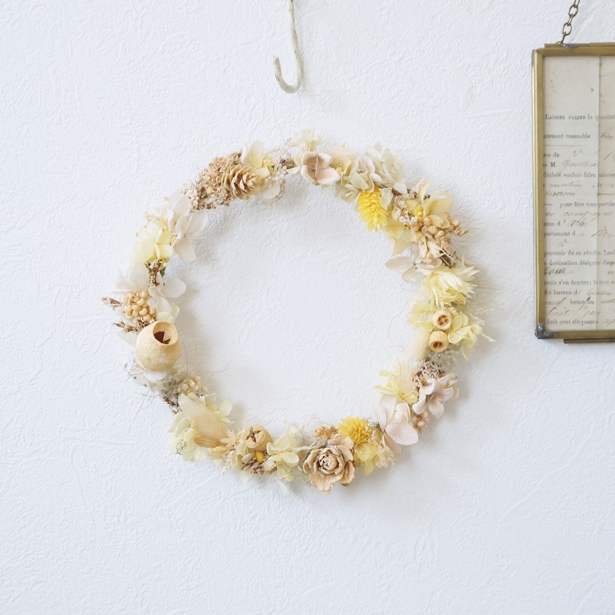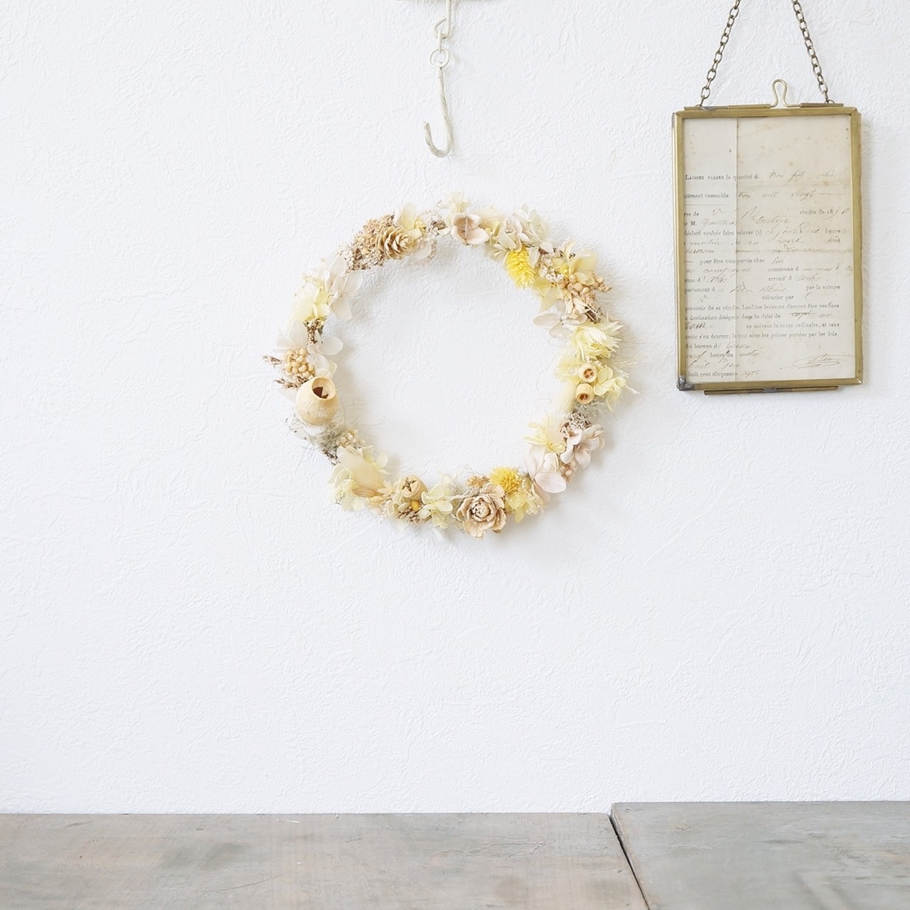 イエローとホワイトを中心にアイボリー系の木の実でまとめました。