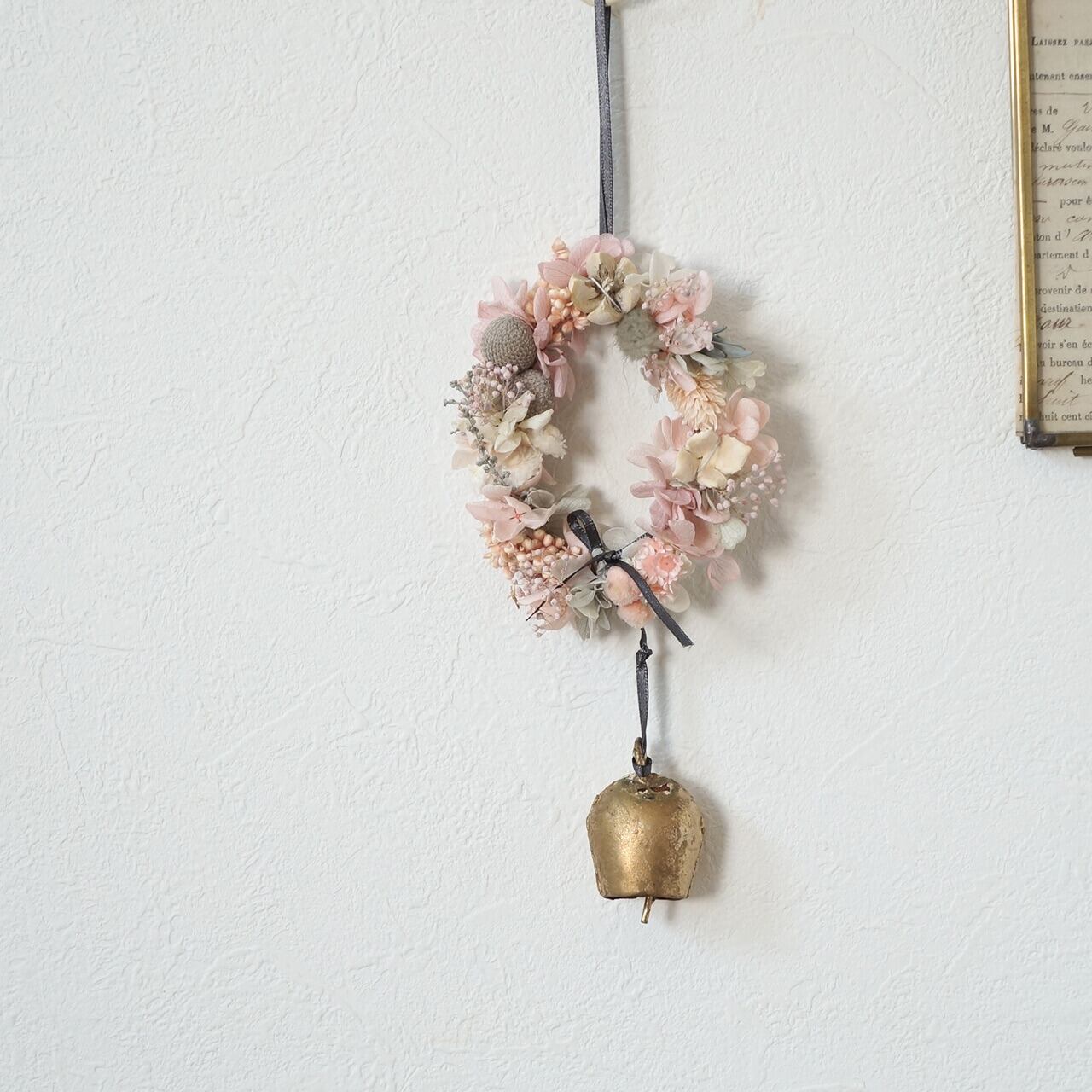 かわいらしいカウベルがアクセントになった小さなオーバル型リース