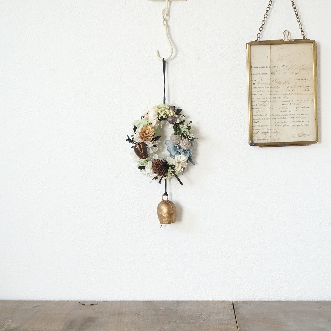 かわいらしいカウベルがアクセントになった小さなオーバル型リース