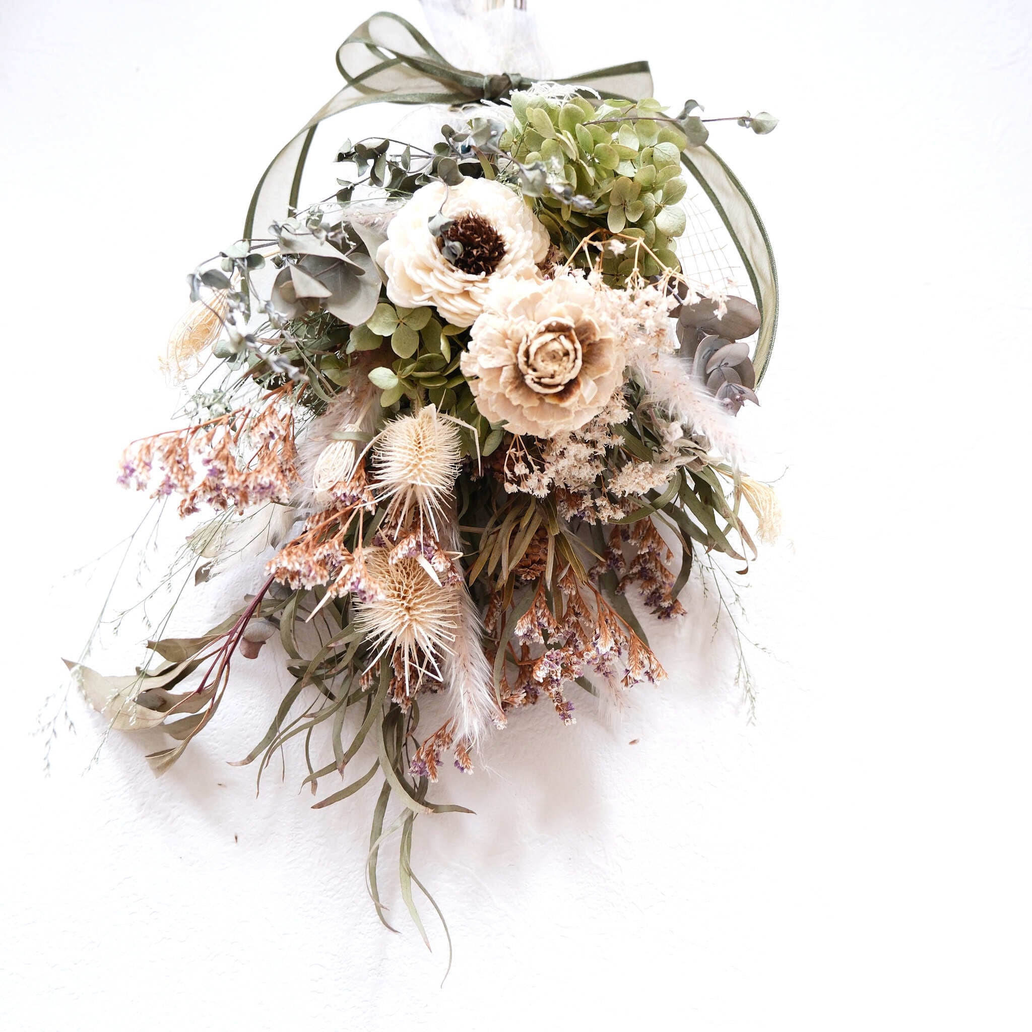 ドライ(グリーンアナベル、シダローズ、かすみ草、ソーラーラナンキュラス、チーゼルなど)